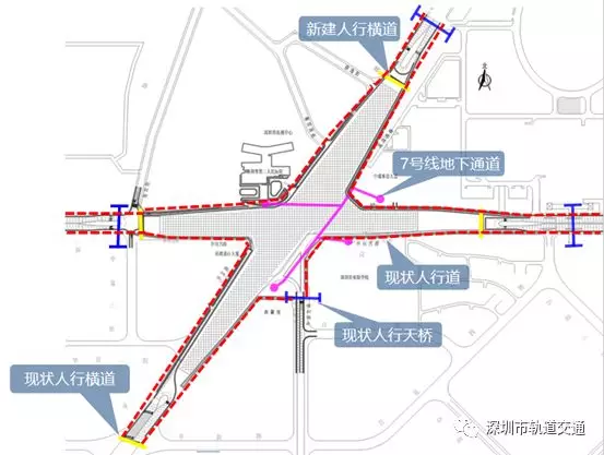 3.地鐵運營時段內(nèi),可通過7號線黃木崗站地下通道以及4個出入口解決過街問題。
