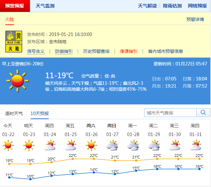 深圳市氣象局預(yù)計,今天晴天間多云,天氣干燥;11-19℃;北風(fēng)3級,沿海和高地最大陣風(fēng)6-7級;濕度45%-75%。預(yù)計23日晴朗干燥;24-26日晴天干燥,氣溫有所回升;27日受偏南氣流影響,多云為主。