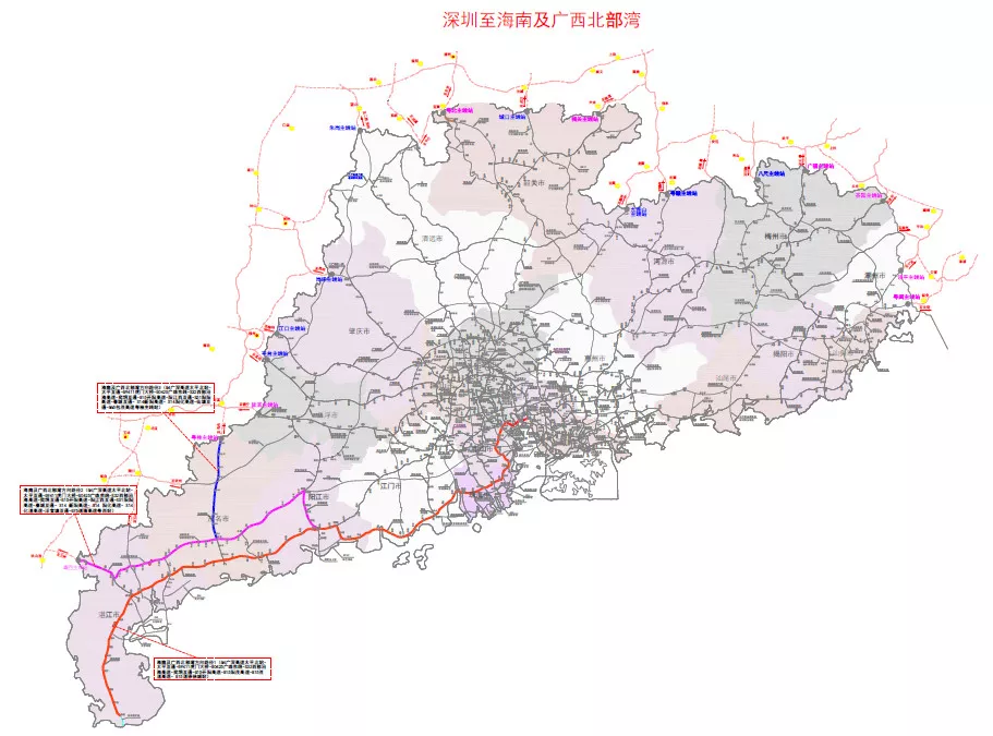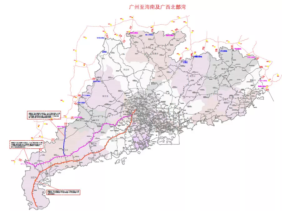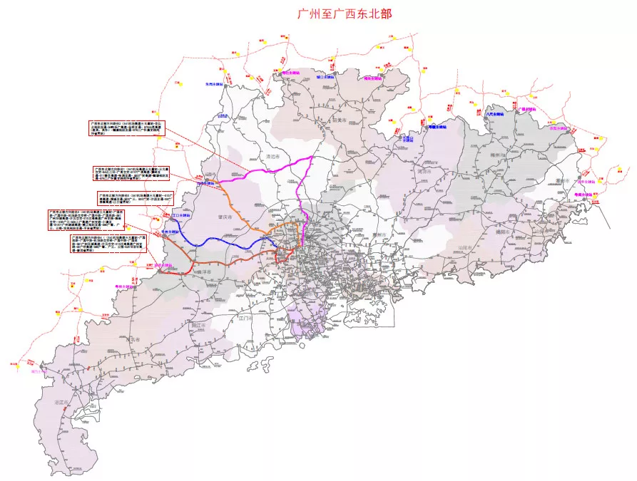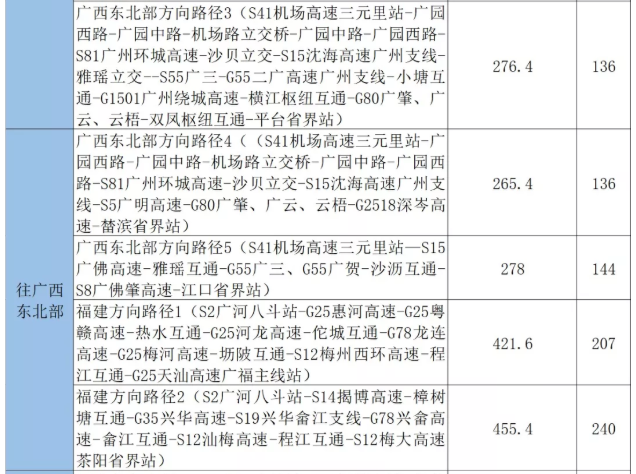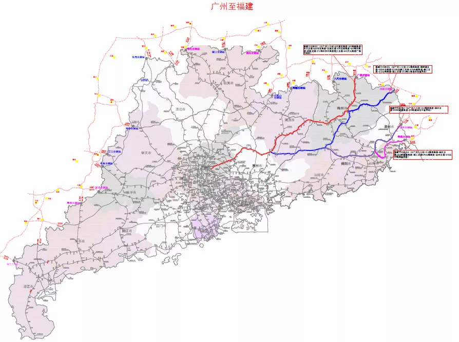 從廣州出發(fā),通往湖南、廣西東北部、江西、福建、廣西北部灣及海南方向的出行指引: