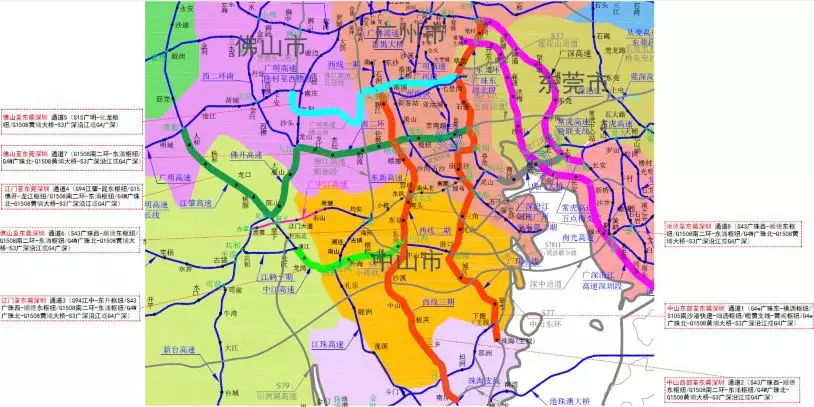 以廣州、深圳為中心的出城、及各片區(qū)出省方向車流密集。