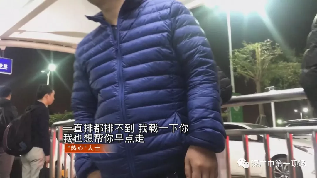 網約車通道內,這些“熱心人士”的數量也不少——通向網約車通道的人行道,網約車通道等候的人群中,到處都有他們的身影,在他們看來,自己是在向初到深圳的旅客提供熱情周到的服務。