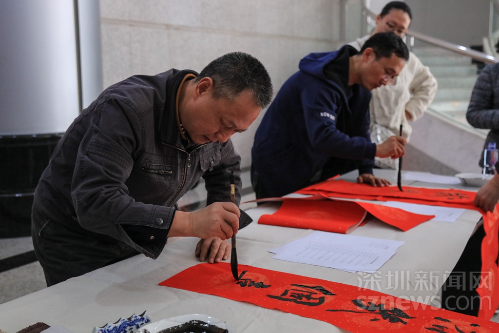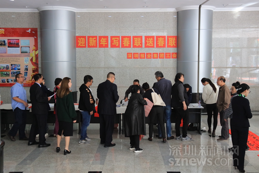 深圳新聞網(wǎng)2019年1月24日訊(記者 張玲實(shí)習(xí)生 關(guān)天宇)寫春聯(lián)送祝福是深圳報(bào)業(yè)集團(tuán)每年的例牌環(huán)節(jié),今年也不例外。1月24日下午,深圳報(bào)業(yè)集團(tuán)工會在商報(bào)大廈和深圳特區(qū)報(bào)業(yè)大廈同時(shí)開展主題為“迎新年寫春聯(lián)送春聯(lián)”的活動(dòng),平時(shí)用鋼筆電腦寫新聞的記者編輯,今天用傳統(tǒng)的筆墨紙硯寫下對新一年的祝福和期許。