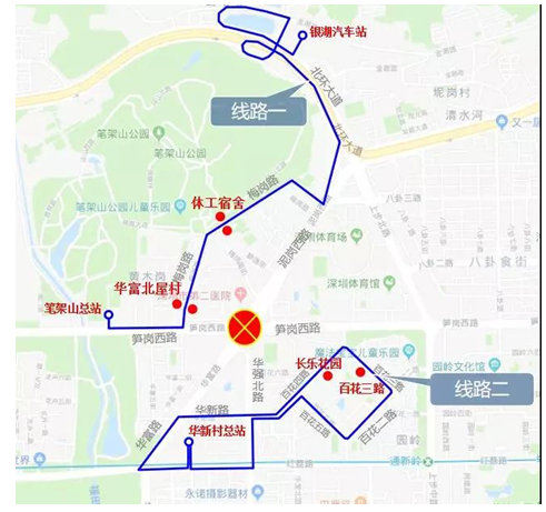 施工封閉部分為泥崗西路、華富路、筍崗西路、華強北路黃木崗立交部分路段,詳情請見下圖。