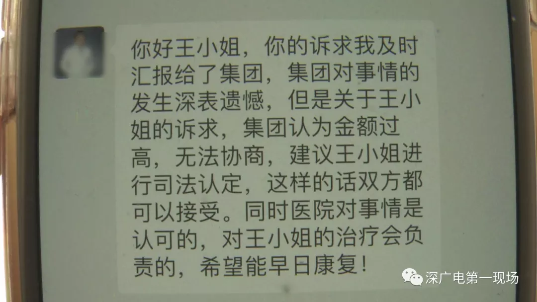 而在鄭小姐與整形機構的微信記錄顯示,整形機構負責人表示“醫(yī)院對發(fā)生的事情是認可的,但具體賠償多少希望有第三方機構認定”。