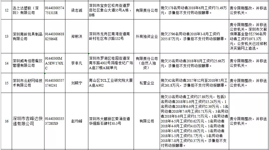 省人社廳近日公布2019年第一批用人單位重大勞動保障違法行為名單