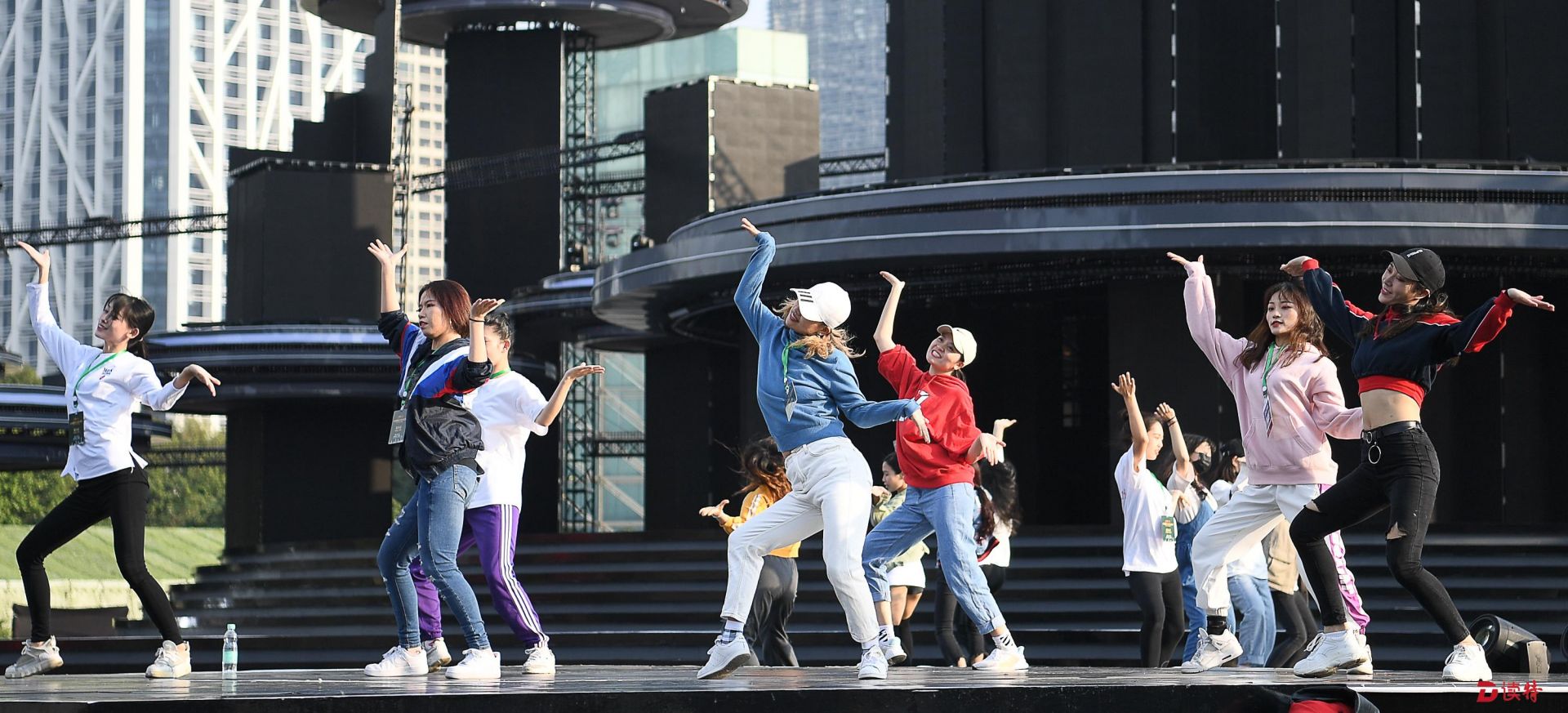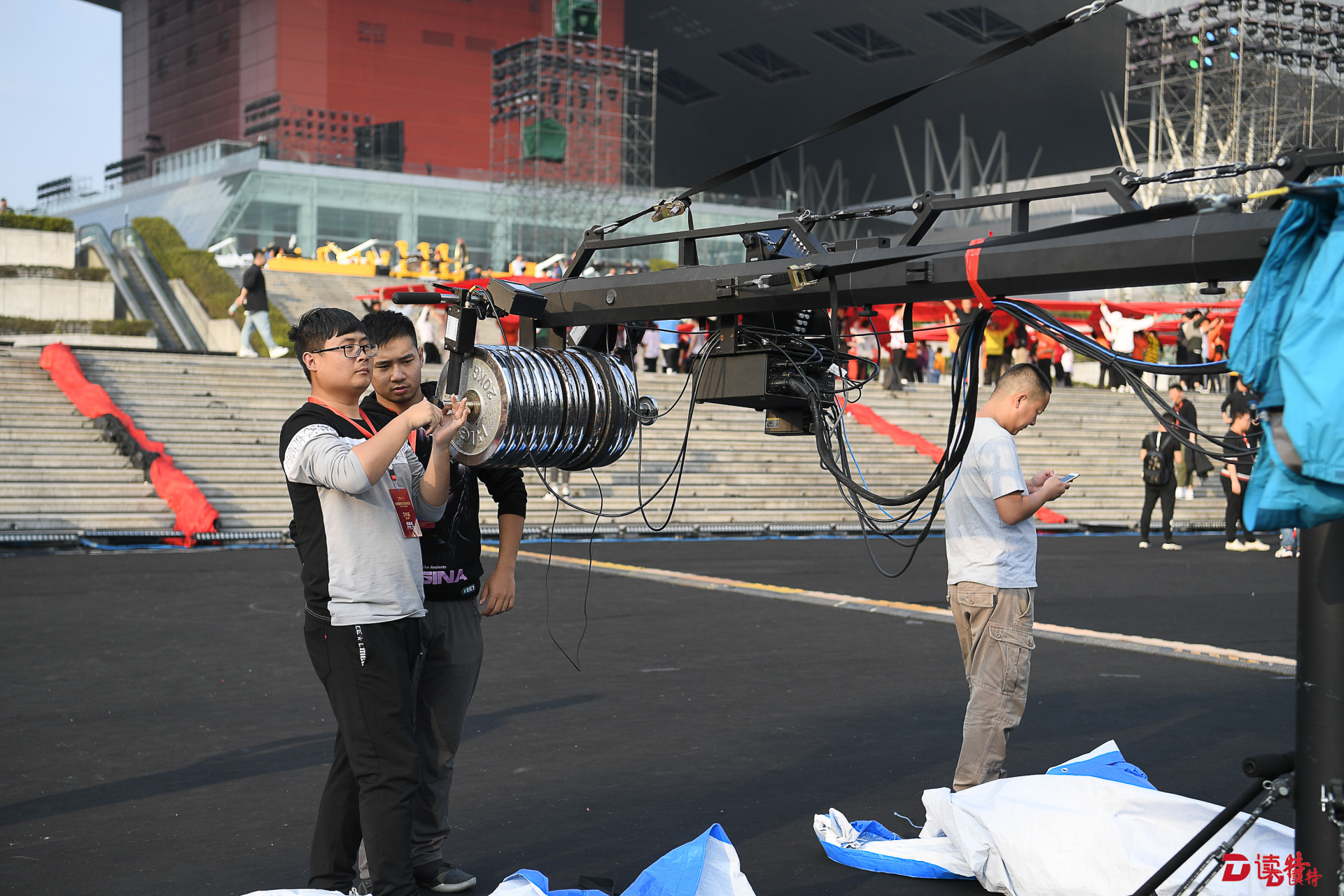 “你們的目光所及都是舞臺(tái)!”當(dāng)記者當(dāng)天下午來到市民中心廣場時(shí)彩排,分會(huì)場總導(dǎo)演孫濱指著搭建的主舞臺(tái)、舞臺(tái)前方的階梯和廣場、以及舞臺(tái)后方的高樓大廈這樣說。