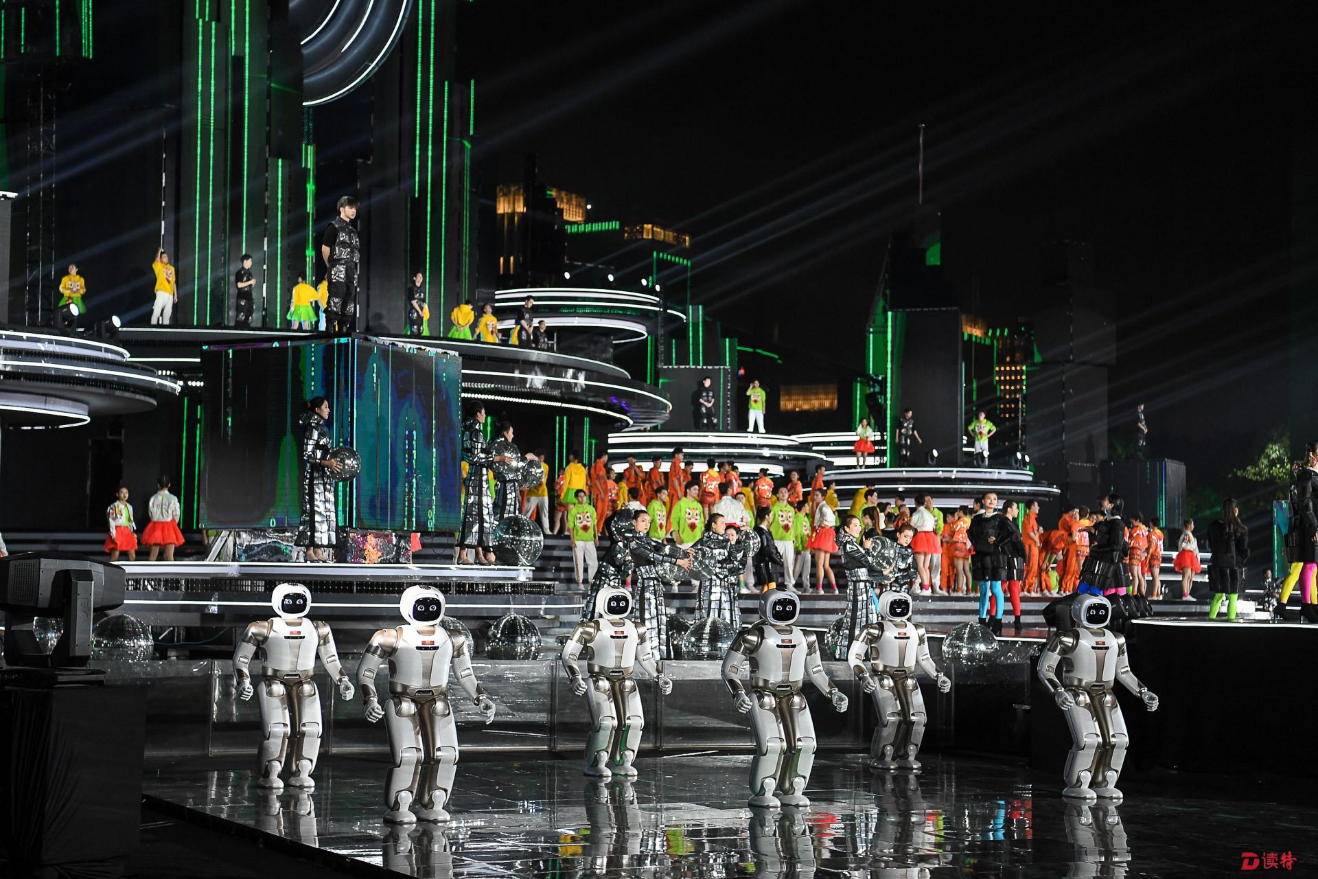 “可以說深圳分會(huì)場的每一個(gè)節(jié)目都貫穿了科技元素?!北热缥枧_(tái)上最新型的跳舞機(jī)器人、機(jī)械臂,演員衣服上嵌入的柔性屏,還有無人機(jī)、撲翼飛行器、云軌、云巴等等。晚會(huì)還使用了非常多的AR(增強(qiáng)現(xiàn)實(shí))技術(shù),在屏幕上把虛擬世界套在現(xiàn)實(shí)世界并進(jìn)行互動(dòng),虛實(shí)結(jié)合呈現(xiàn)出十足的“夢(mèng)幻”之感。