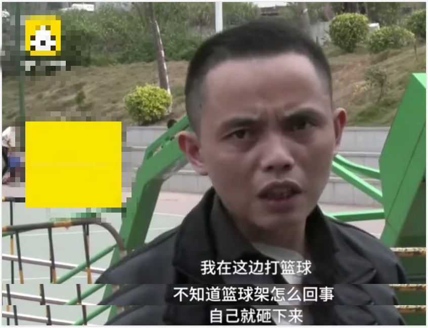 據(jù)何先生回憶,當(dāng)時(shí)他正在打球,籃球架不知何故,"自己就砸下來",導(dǎo)致其當(dāng)場(chǎng)昏迷、鎖骨骨折。從現(xiàn)場(chǎng)拍攝的視頻中可以看到,倒塌后的籃球架框嚴(yán)重變形,幸好與其一同打球的三四個(gè)球友合力將他從籃球架下抬出來,并撥打了120。