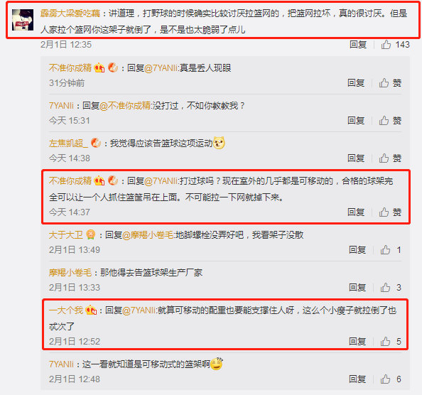 另外一部分網(wǎng)友則認(rèn)為,即便傷者的行為有欠妥之處,但籃球架一拉就倒,證明其本身確實(shí)存在質(zhì)量問題。