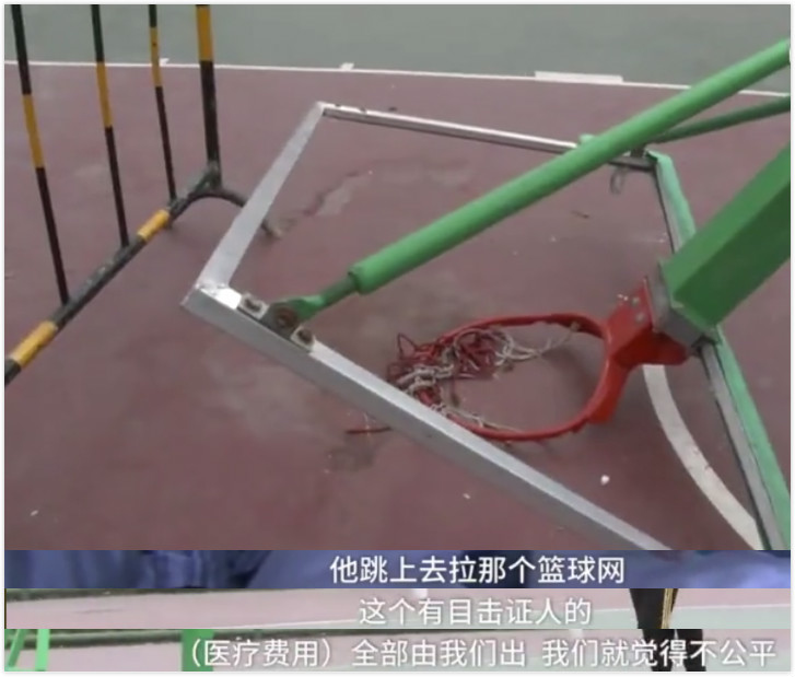 何先生認(rèn)為造成這起事故的主要原因是施工方的疏忽,未將籃球架有效固定,因?yàn)榈顾倪@個(gè)籃球架底座并沒有打鋼釘,填充物也僅有兩塊水泥磚,并不牢固。對(duì)此,球場(chǎng)施工方表示,工程驗(yàn)收時(shí)"百分百 OK",愿意出于人道主義關(guān)懷給予傷者適當(dāng)補(bǔ)償,但拒絕支付全部醫(yī)療費(fèi),因?yàn)椋⑺先ダ莻€(gè)籃球網(wǎng),有目擊者的"。