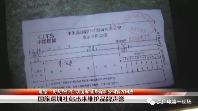 李女士是通過上網(wǎng)百度搜索,找了這家自稱深圳“國旅”的野馬旅行社,并且,在與李女士等46人簽定的合同和收據(jù)落款處,都蓋有清晰的深圳市國旅印章。8號上午,李女士拿到了證件,沒等購物開始,就簽字先行離團轉(zhuǎn)至現(xiàn)在的酒店安頓,同時打電話發(fā)微信向深圳的朋友求助。人大代表楊勤關(guān)注到此事后,將情況轉(zhuǎn)告了深圳市消費者委員會。消委會透露,經(jīng)與深圳國旅確認,北方大廈7樓無他們的營業(yè)網(wǎng)點,“珊珊”等也并非國旅員工。