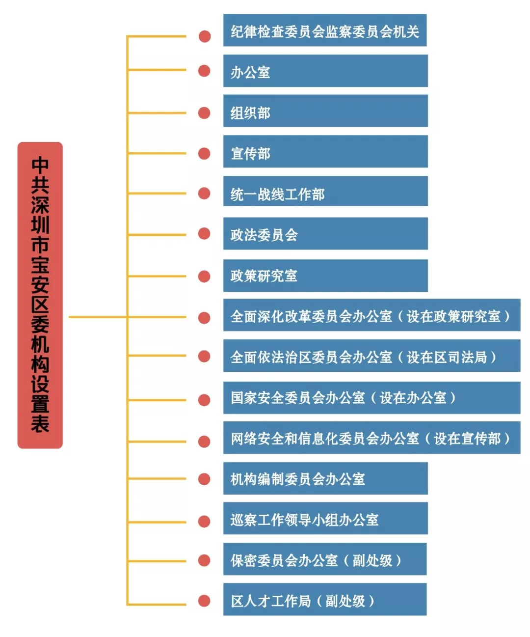 2月12日,中共深圳市寶安區(qū)委六屆八次全會召開,對寶安區(qū)機構(gòu)改革工作作出全面部署,寶安區(qū)機構(gòu)改革工作進入全面實施階段。改革后,共設(shè)置黨政機構(gòu)32個,其中,黨委機構(gòu)11個,政府工作部門21個。區(qū)委書記姚任、區(qū)長郭子平、區(qū)人大常委會主任張志彪、區(qū)政協(xié)主席鄧桂洪等區(qū)四套領(lǐng)導(dǎo)班子參加會議。