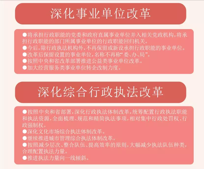 三是堅決落實中央、省委和市委決策部署。著力完善維護黨中央權(quán)威和集中統(tǒng)一領(lǐng)導(dǎo)的體制機制,機構(gòu)職能做到上下基本對應(yīng),不折不扣落實好各項改革任務(wù)。