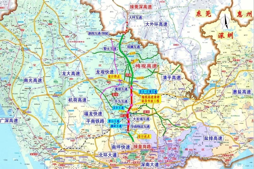 南起原梅林主線收費(fèi)站南端,北至石清大道與清湖立交之間,與原北線擴(kuò)建工程起點(diǎn)對(duì)接,道路全長約7.975公里。