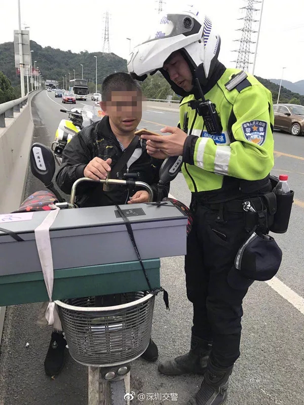 2月14日上午,深圳交警巡邏至南坪快速長嶺陂大橋時發(fā)現(xiàn)一輛非機(jī)動車上快速路。上前詢問后得知,男子是幫客戶送禮物的,不料卻迷路了,這才誤闖了快速路。蜀黍?qū)ζ浣逃?,迅速將?dāng)事人護(hù)送下快速路路口。