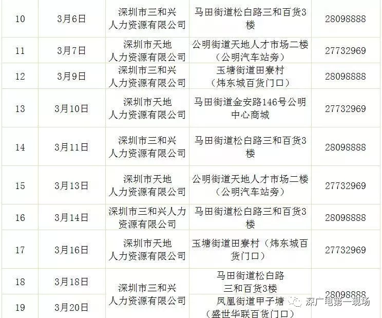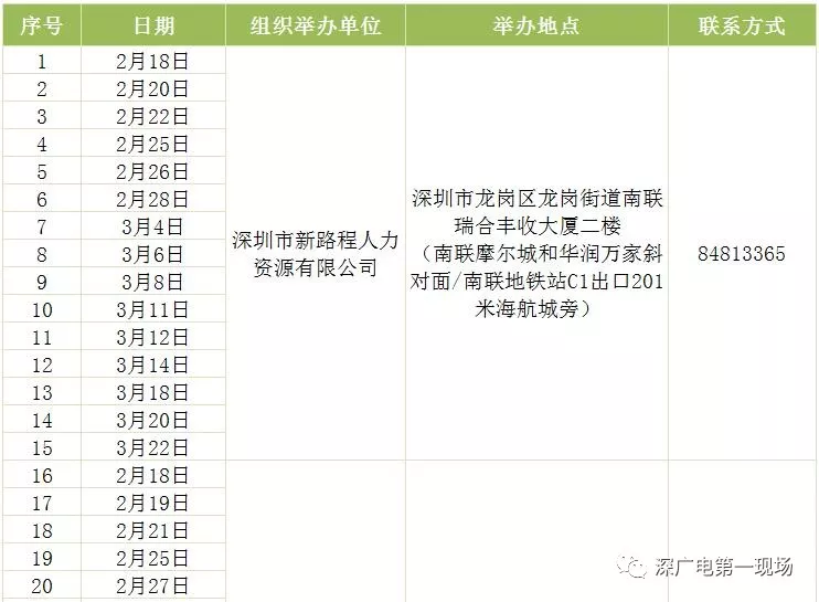其中,深圳市公共就業(yè)服務中心26場,福田區(qū)27場,羅湖區(qū)40場,鹽田區(qū)14場,南山區(qū)9場,寶安區(qū)22場,龍崗區(qū)60場,龍華區(qū)56場,坪山區(qū)18場,光明區(qū)25場,大鵬新區(qū)9場。