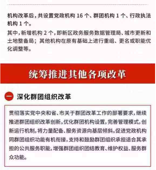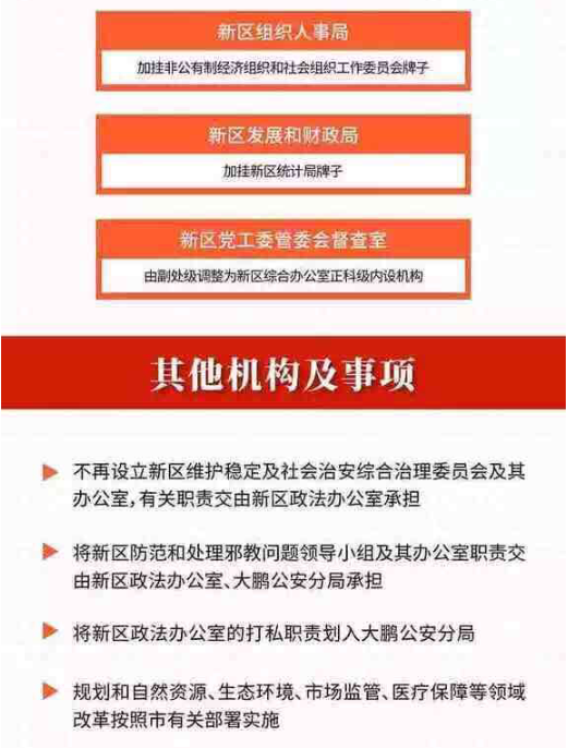 機構(gòu)改革后,大鵬新區(qū)共設(shè)置黨政機構(gòu)16個、群團機構(gòu)1個、