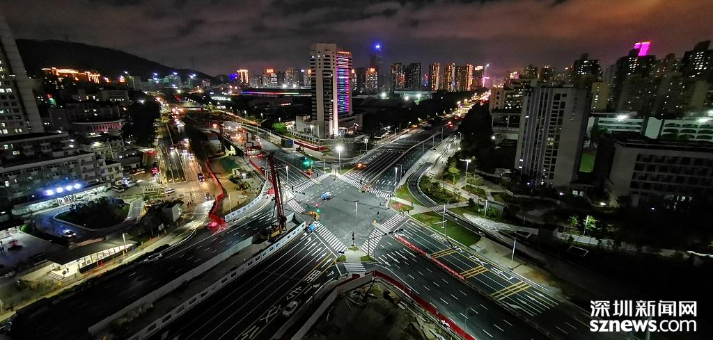 目前,原黃木崗立交所在地面已恢復(fù)成平交燈控十字路口,筍崗西路、華富路、泥崗西路實(shí)現(xiàn)雙向六車道通行。