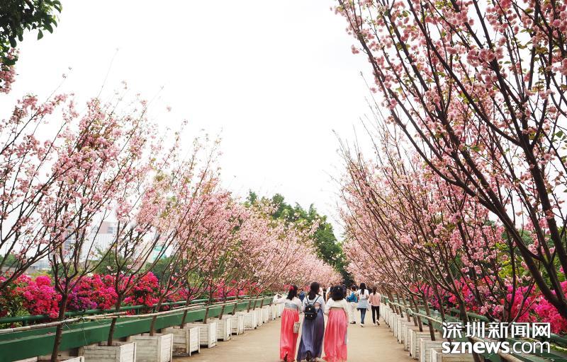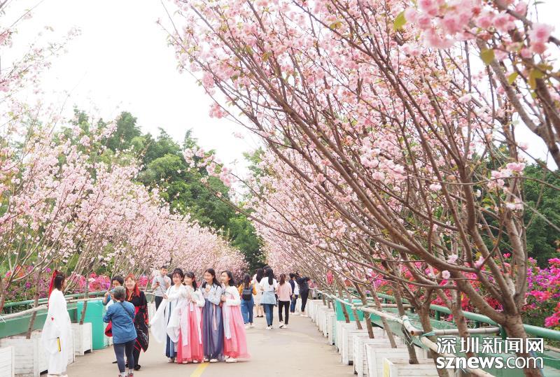 觀瀾湖生態(tài)體育園櫻花正爛漫 穿漢唐服裝可免費(fèi)賞玩