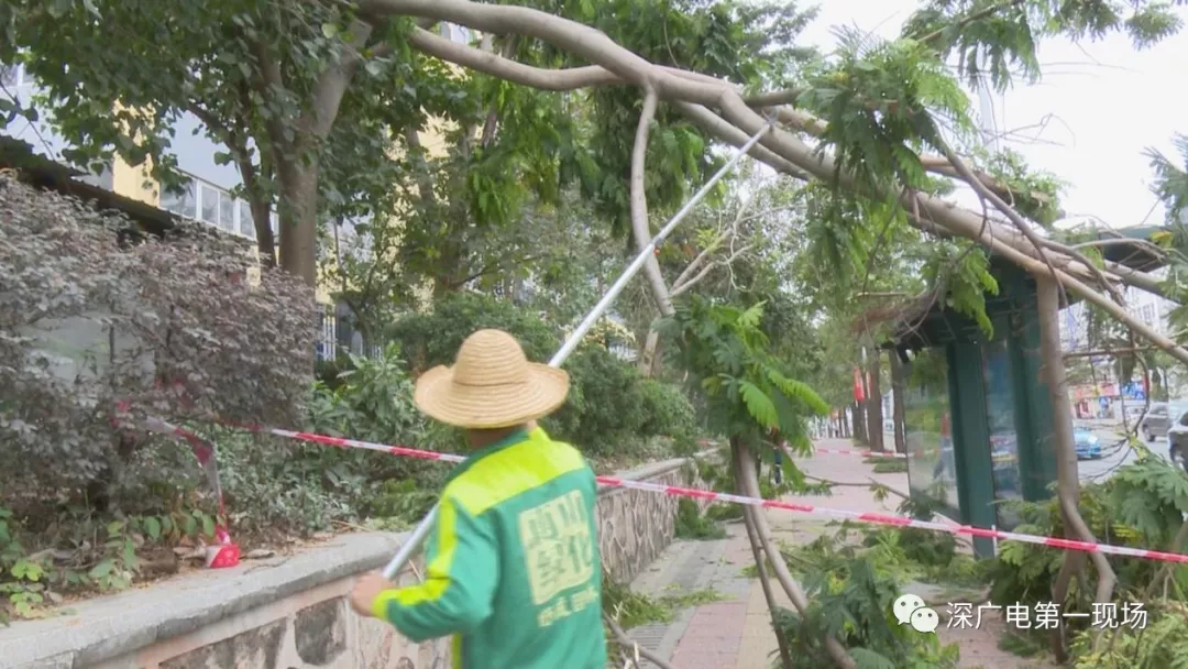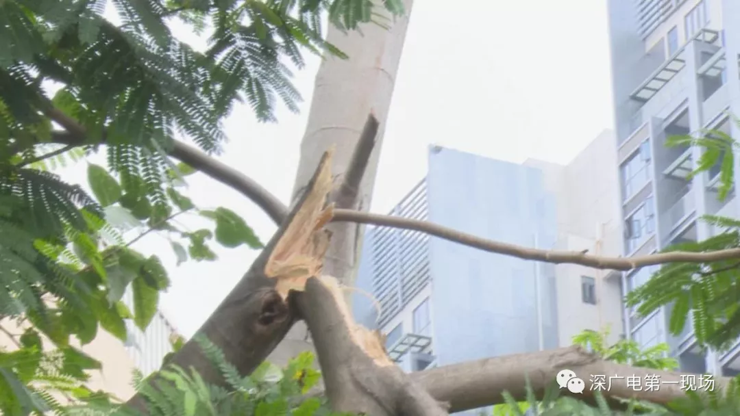 園林養(yǎng)護(hù)公司相關(guān)負(fù)責(zé)人介紹,這棵樹(shù)的樹(shù)名叫做南洋楹,記者觀察發(fā)現(xiàn),該路段種植的樹(shù)木基本都屬于這一樹(shù)種,但唯獨(dú)這一棵出現(xiàn)了樹(shù)枝折斷的情況。記者還在旁邊發(fā)現(xiàn)了一棵同樣的樹(shù),樹(shù)干已經(jīng)被折斷,劉先生說(shuō),這還是去年9月份,被臺(tái)風(fēng)山竹吹斷的。像今天這種風(fēng)平浪靜的情況下斷枝,非常少見(jiàn)。