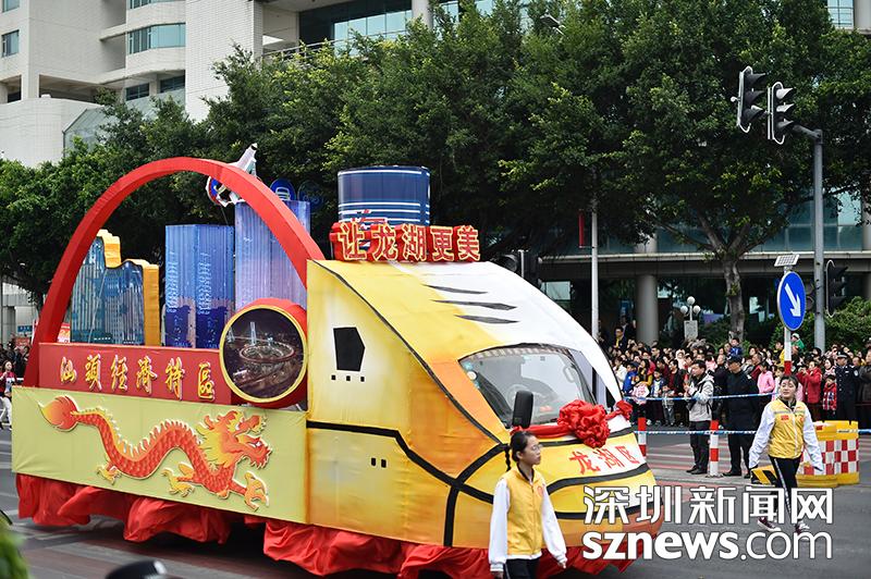 帶有汕頭經(jīng)濟特區(qū)字樣的花車正在行進