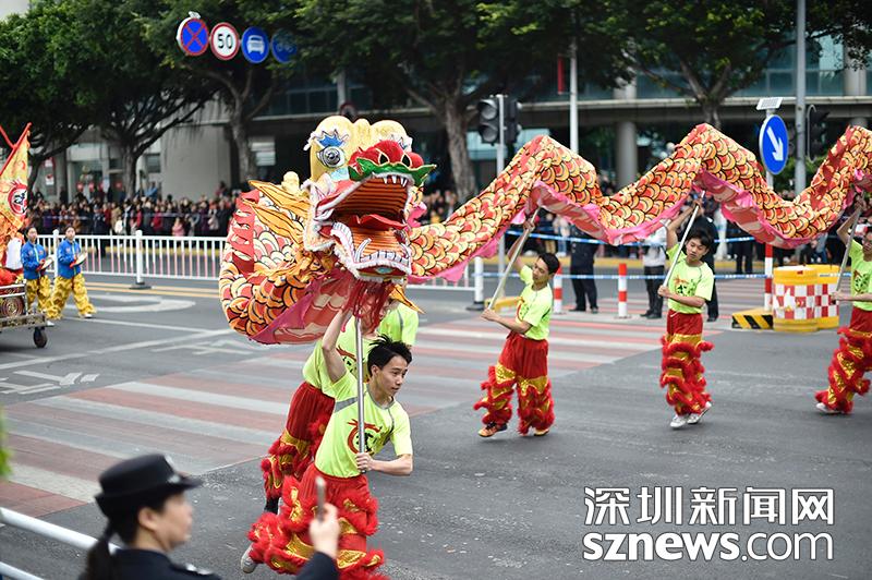 傳統(tǒng)的舞龍舞獅也增添了不少節(jié)日氣氛