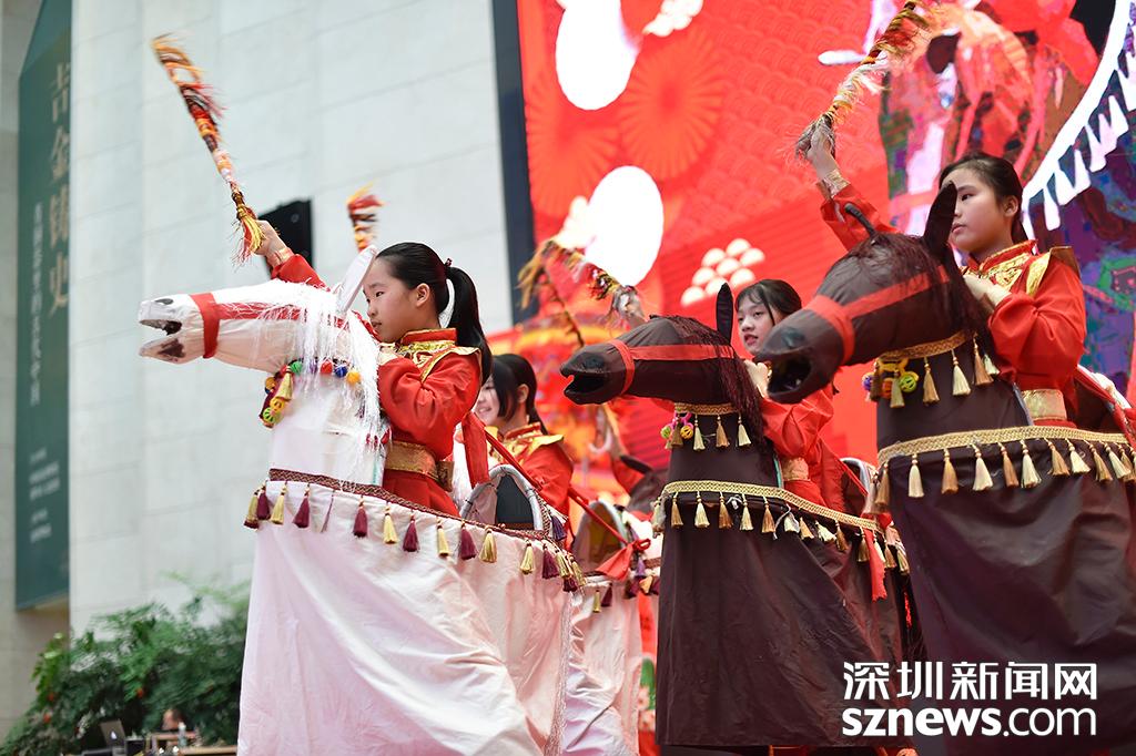 參演的孩子們穿著紙馬服裝進(jìn)行表演