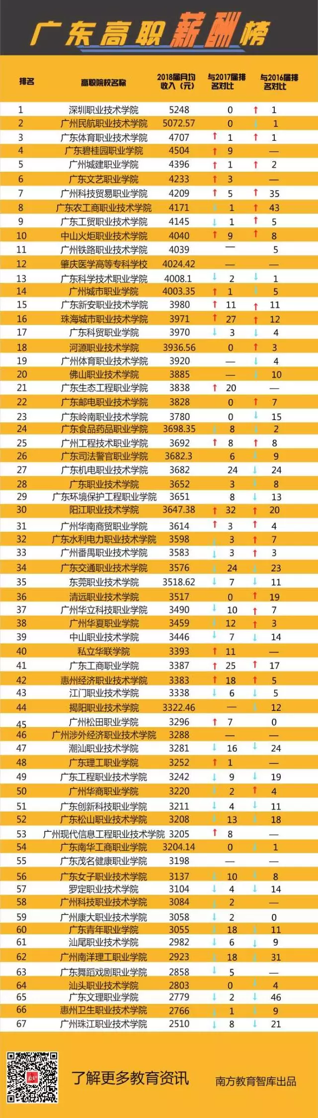 ▲廣東高職薪酬10強(qiáng),深職院、廣州民航平均月薪超5000元,超過不少本科院校。