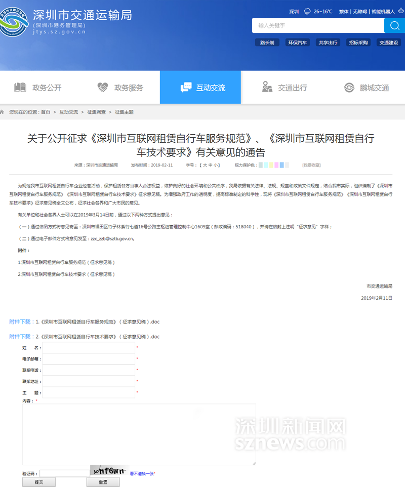 深圳新聞網(wǎng)2019年2月21日訊 (記者 吳英敏)共享單車(chē)要如何擺放才規(guī)范?停放單車(chē)車(chē)輛連續(xù)長(zhǎng)度有沒(méi)有限制……近日,為規(guī)范單車(chē)運(yùn)營(yíng),深圳市交通局已組織編制了《深圳市互聯(lián)網(wǎng)租賃自行車(chē)服務(wù)規(guī)范》和《深圳市互聯(lián)網(wǎng)租賃自行車(chē)技術(shù)要求》,現(xiàn)通過(guò)其官網(wǎng)公開(kāi)征求社會(huì)各界意見(jiàn)?!兑?guī)范》對(duì)單車(chē)運(yùn)營(yíng)企業(yè)備案、退出、車(chē)輛投放、人員配置、運(yùn)營(yíng)管理等方面均做出了具體規(guī)定。