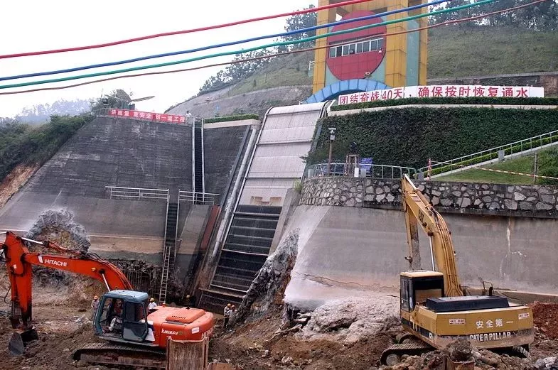 ▲1998年10月22日,西枝江截流現(xiàn)場(chǎng)