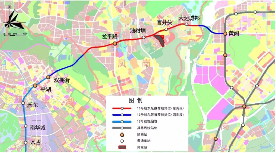 10號線線路由在建地鐵10號線雙擁街站后引出,之后進(jìn)入東莞。線路全長約9.8公里,設(shè)站5座,采用地下敷設(shè)方式。