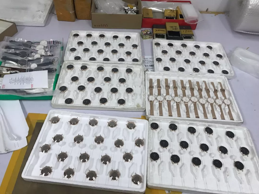 2018年6月21日,深圳市公安局經(jīng)偵支隊(duì)聯(lián)合市市場(chǎng)監(jiān)管部門(mén)開(kāi)展打擊假冒DW品牌手表、FOREO等品牌潔面儀收網(wǎng)行動(dòng),共出動(dòng)警力110人,查處窩點(diǎn)13個(gè),刑拘犯罪嫌疑人12人?,F(xiàn)場(chǎng)查扣假冒DW品牌手表13500塊,表帶、表殼、后蓋等配件43000個(gè)以及包裝盒、標(biāo)簽12000余個(gè),現(xiàn)場(chǎng)查扣假冒產(chǎn)品價(jià)值1200萬(wàn)元人民幣,總涉案金額3000余萬(wàn)元人民幣。查扣假冒各品牌美容產(chǎn)品、半成品和商標(biāo)標(biāo)識(shí)11798件,查扣假冒產(chǎn)品價(jià)值人民幣500萬(wàn)元。經(jīng)查,上述犯罪團(tuán)伙在未經(jīng)注冊(cè)商標(biāo)所有人許可的情況下,擅自使用注冊(cè)的商標(biāo)圖案組裝、翻新假冒DW品牌手表、FOREO品牌潔面儀。經(jīng)商標(biāo)權(quán)利人鑒定,現(xiàn)場(chǎng)查獲的手表和美容儀為假冒其注冊(cè)商標(biāo)的產(chǎn)品。