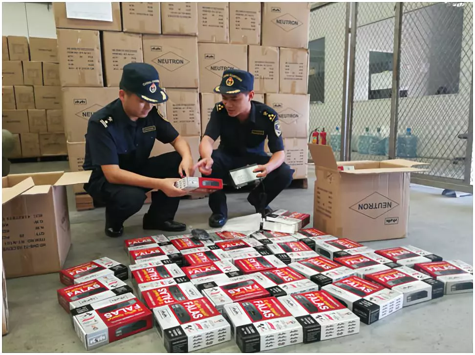 2018年10月17日,在深圳市煙草專(zhuān)賣(mài)局的統(tǒng)一指揮下,福田、羅湖等區(qū)局聯(lián)合公安部門(mén)展開(kāi)抓捕行動(dòng),當(dāng)場(chǎng)查獲假私卷煙330萬(wàn)支,查扣涉案車(chē)輛4臺(tái),案值逾320萬(wàn)元,抓獲涉案嫌疑人5名。據(jù)了解,該案嫌疑人多次作案,嚴(yán)重?cái)_亂卷煙市場(chǎng)秩序,區(qū)局為此成立專(zhuān)案組,不分晝夜蹲點(diǎn)守候。經(jīng)過(guò)2個(gè)多月的跟蹤調(diào)查,一舉破獲這宗運(yùn)輸、倉(cāng)儲(chǔ)、銷(xiāo)售假私煙案件。案發(fā)現(xiàn)場(chǎng)查獲兩把手槍、三包子彈及部分管制刀具等器械,目前該案由公安機(jī)關(guān)作進(jìn)一步調(diào)查處理。該案是典型的涉黑涉煙案件。此案的告破,充分借助了中央“掃黑除惡”的東風(fēng),有力彰顯了煙草專(zhuān)賣(mài)執(zhí)法人員不懼危險(xiǎn)的精神,切實(shí)維護(hù)了國(guó)家利益和消費(fèi)者利益。