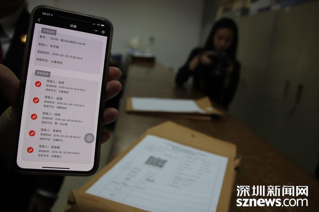 法官謝婷展示福田法院的流碼案件流轉(zhuǎn)系統(tǒng),該系統(tǒng)可節(jié)省80%的簽卷時間