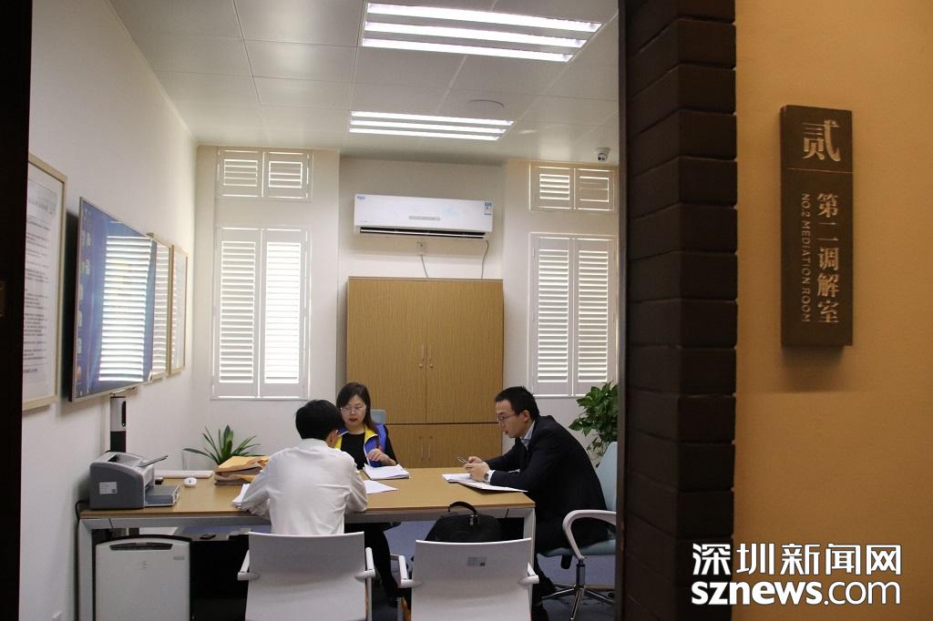 第一調(diào)解室內(nèi)兩宗案件正在進行調(diào)解工作