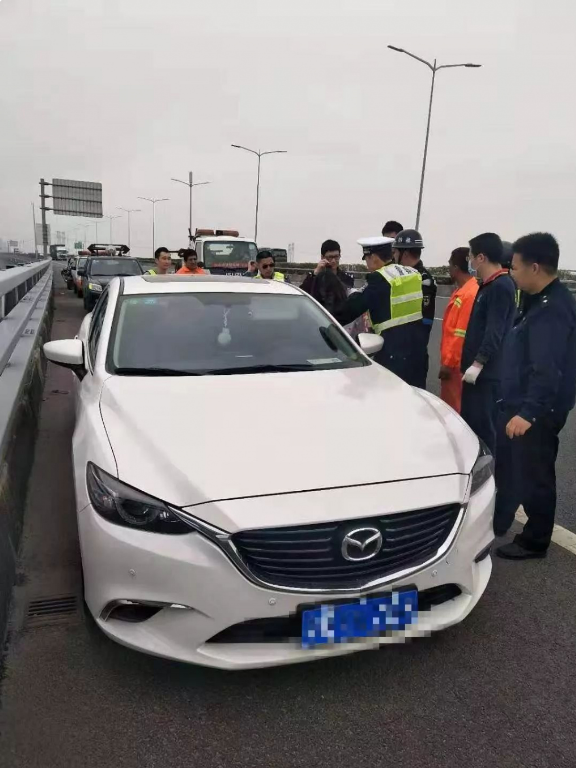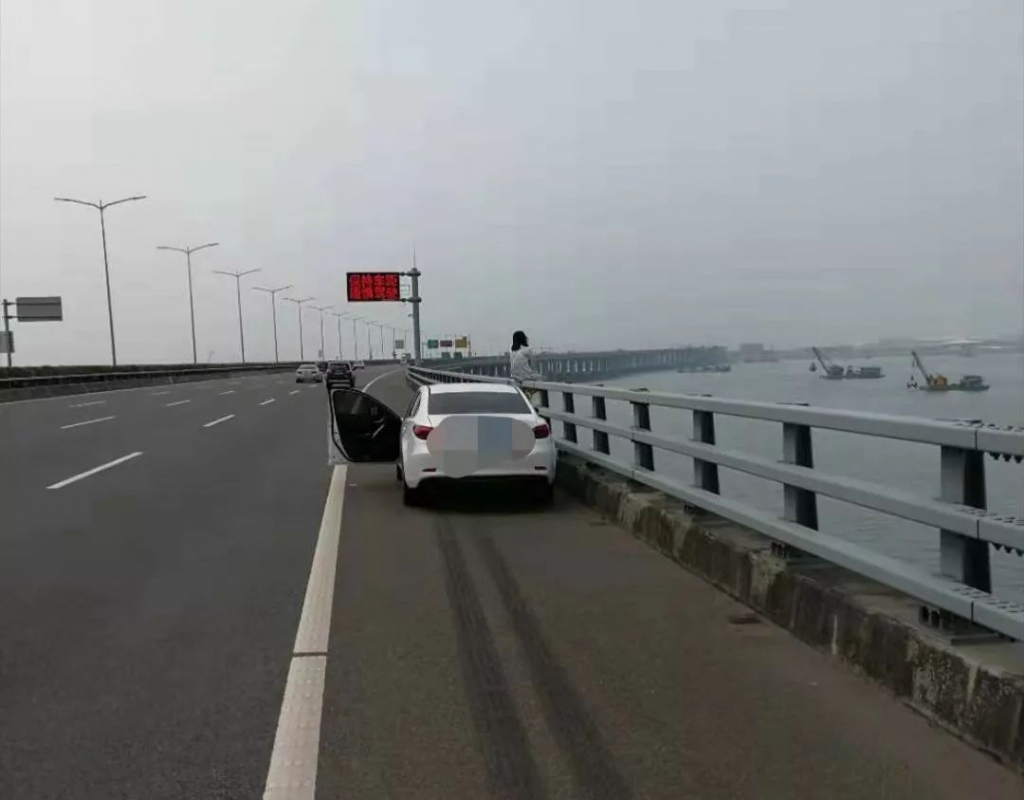 2019年3月4日14時許,深圳交警接到報(bào)警稱在沿江高速北行西鄉(xiāng)段,一輛白色小轎車停在應(yīng)急車道,小轎車旁一名女子坐在高速公路橋邊情緒十分不穩(wěn)定。深圳交警快速反應(yīng),立即趕往現(xiàn)場。
