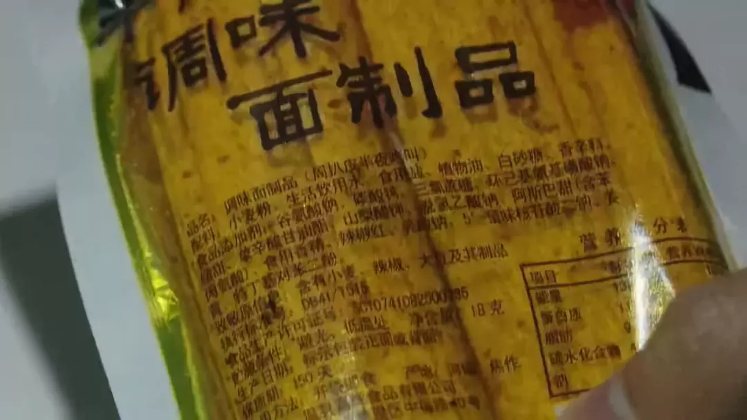 記者隨機購買了四袋“五毛錢辣條”,外包裝顯示,食品配料一欄都以面粉、小麥粉為主,而食品添加劑一覽卻都是寫滿了四五行,少的九種,多的竟然高達十五種。專家介紹,市面上生產(chǎn)的不正規(guī)辣條大多出自小作坊,著色劑濫用,甜蜜素、糖精鈉、山梨酸及鉀鹽等添加劑也超標嚴重,所謂的“好吃”、“上癮”,只是味精、色素和食品添加劑在起作用。