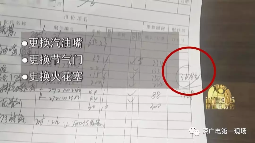而這個小故障在經(jīng)過大興奔馳羅湖店的檢查后,卻被開出3600多元的維修費,包括更換噴油嘴膠圈、節(jié)氣門墊等部件,以及工時費。