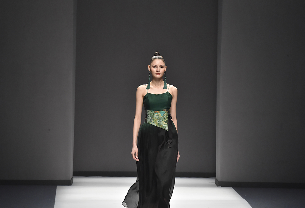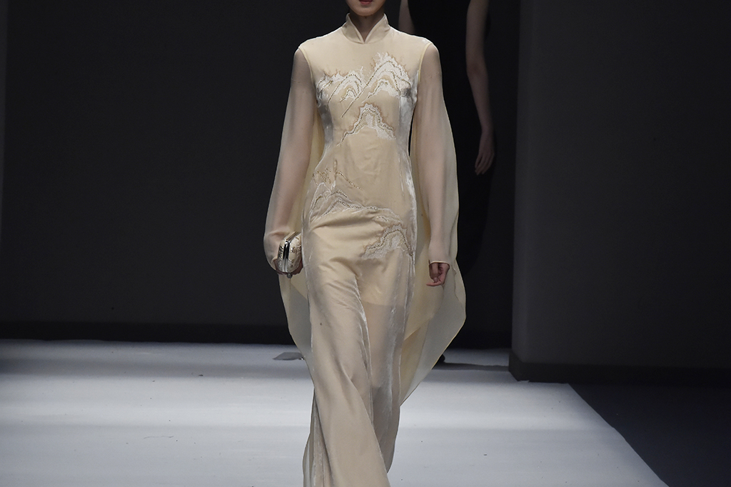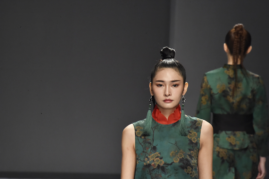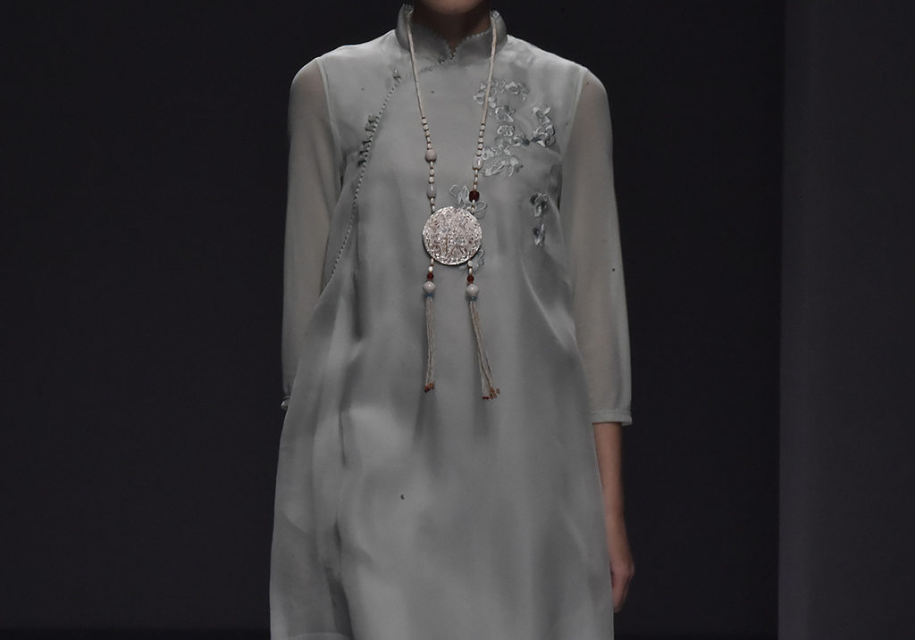 模特正在展示品牌Sunshine見花開的服裝服裝帶有東方美感