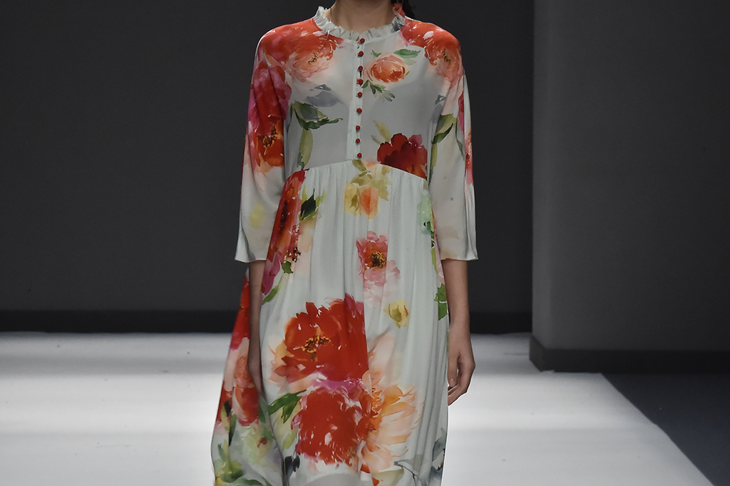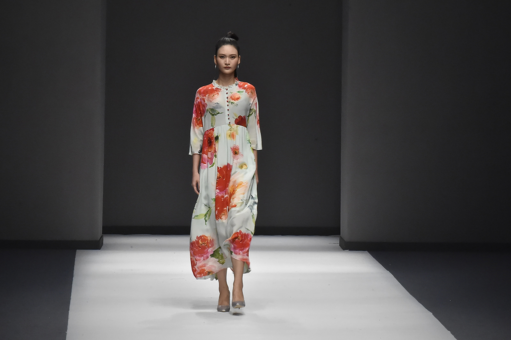 模特正在展示品牌Sunshine見花開的服裝花朵的設(shè)計(jì)盡顯東方特色