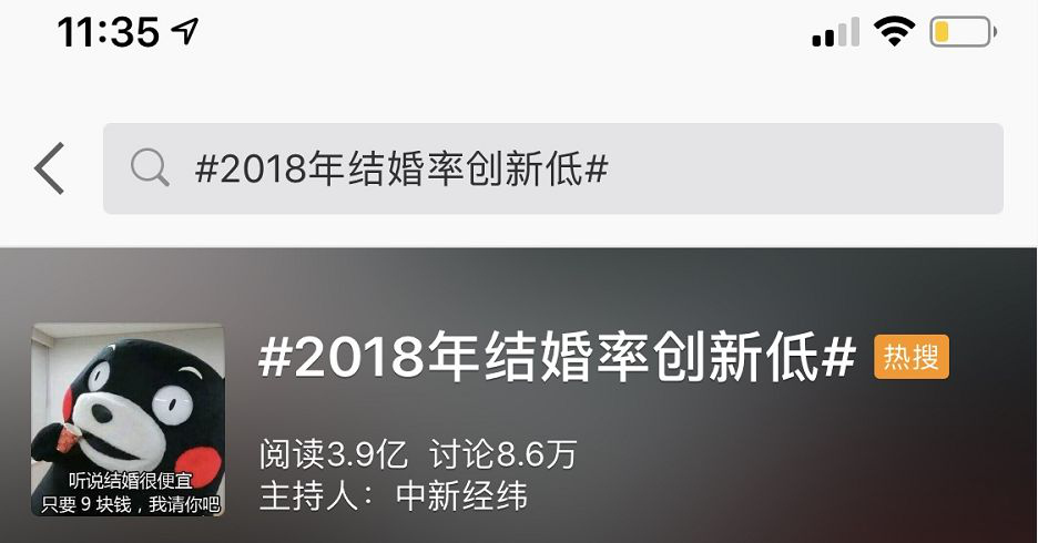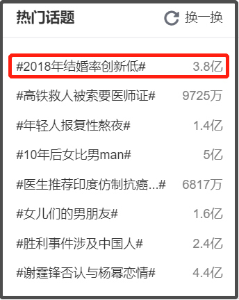 一個(gè)新話題 #2018年結(jié)婚率創(chuàng)新低 #