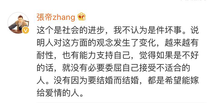 以前想著是28歲結(jié)婚,現(xiàn)在已經(jīng)無(wú)所謂了。如果是和對(duì)的人結(jié)婚,在我心里婚姻排第一,主要還是因人而決定步入婚姻。對(duì)戀愛(ài)、結(jié)婚對(duì)象最主要的標(biāo)準(zhǔn)就是價(jià)值觀要吻合。