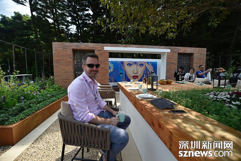 園林設(shè)計師Christopher Edward Eulloran和其設(shè)計的海派南洋花園合影
