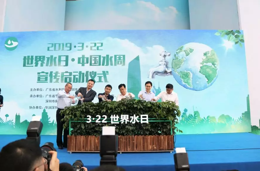 現場領導用取自于深圳灣體育中心大樹廣場收集回用的雨水,共同澆灌象征著綠色、希望的生命之樹,來正式啟動“世界水日”“中國水周”宣傳活動!