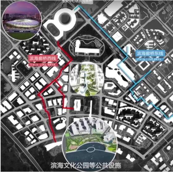 寶安中心區(qū)與前海共同作為深圳西部城市中心和城市客廳的組成部分,3月1日,位于寶安中心區(qū)的濱海廊橋開工,該濱海廊橋兼顧市民休閑、運動、景觀,實現(xiàn)地下、地面、地上三層一體,立體連通寶安體育場、核心商務(wù)區(qū),灣區(qū)之聲音樂廳、濱海文化公園等重大基礎(chǔ)設(shè)施,增強中心區(qū)通達性,強化與濱海地帶的聯(lián)系。