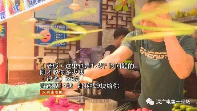 記者按照劉小姐指引,找到該水果店,買(mǎi)了2斤3兩的現(xiàn)切水果,但是這號(hào)稱(chēng)2.3斤的水果實(shí)際只有1.4斤。記者的質(zhì)疑引來(lái)一名自稱(chēng)是老板的男子,他在同一個(gè)秤上,親自幫記者稱(chēng)那盒水果,結(jié)果稱(chēng)出來(lái)的也是1.4斤。