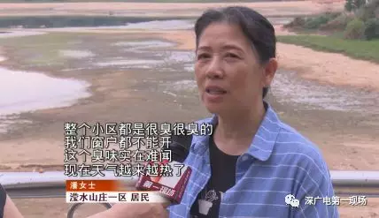 記者也跟隨瀅水山莊一區(qū)居民來到小區(qū)靠近民治水庫的一側,可以明顯聞到有一股腥臭從民治水庫方面飄來,并且,民治水庫里面的水也基本上被抽干,遠處的大壩上,有不少工人正在施工。小區(qū)居民告訴記者,正對著水庫的幾十戶居民受影響更加嚴重。