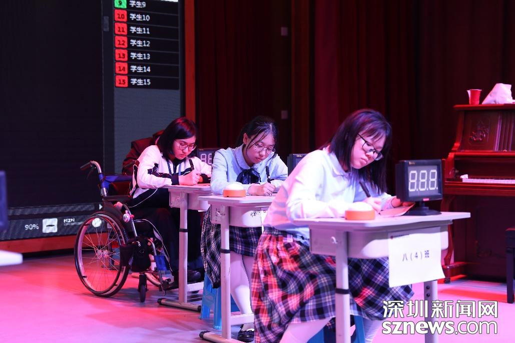 校決選現(xiàn)場(chǎng),初中的同學(xué)們通過猜詞、聽寫、國(guó)學(xué)知識(shí)搶答三個(gè)環(huán)節(jié),帶來(lái)了精彩的視聽盛宴。他們用掌聲相互鼓勵(lì),用眼神激勵(lì)彼此,整個(gè)活動(dòng)下來(lái),溫暖又特別。有學(xué)生告訴記者,他們非常期待深圳市復(fù)選,希望借復(fù)選的環(huán)節(jié)——國(guó)學(xué)知識(shí)測(cè)評(píng)、優(yōu)秀圖書推薦演講和國(guó)學(xué)才藝秀磨練自己,提升自己。