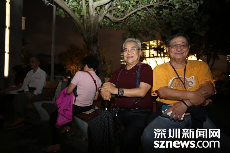 許多市民在市民中心廣場(chǎng)觀看燈光秀演出。