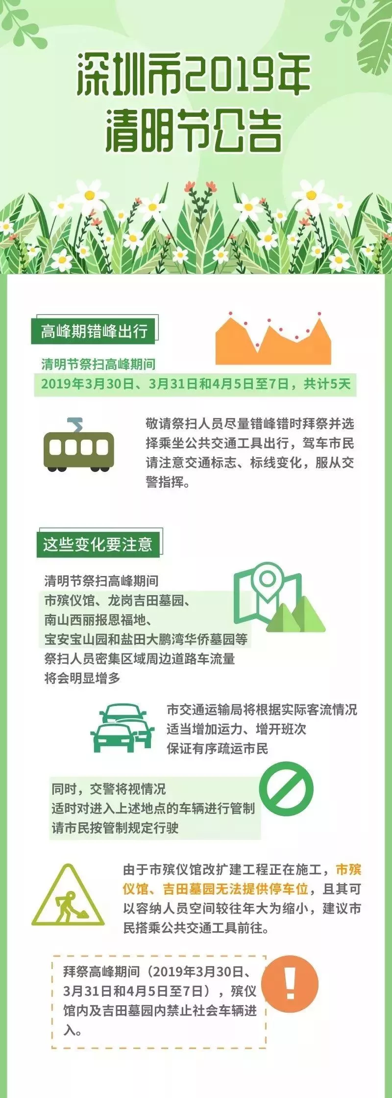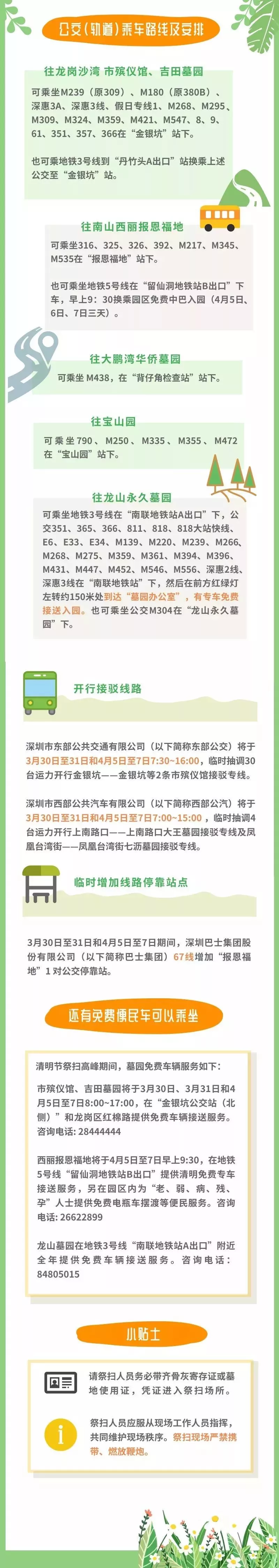 交警部門(mén)將視情況對(duì)上述地點(diǎn)進(jìn)行交通管制,為滿(mǎn)足市民朋友出行祭掃需要,除了給大家準(zhǔn)備出行指引外還將開(kāi)行墓園接駁專(zhuān)線(xiàn)、增加停靠站、增加運(yùn)力請(qǐng)大家文明出行、綠色出行。